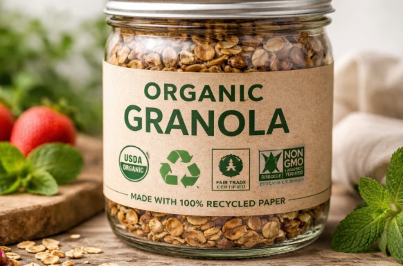 Logos for organic, fair trade, non-GMO, or carbon-conscious practices help consumers quickly identify products that meet recognized standards. These marks provide credibility because they are based on independent verification rather than self-reported claims.